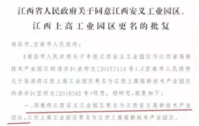 江西安義工業(yè)園區(qū)正式更名為江西安義高新...
